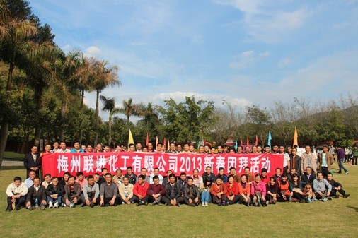 2013年2月2日,梅州聯(lián)進(jìn)化工有限公司在公司進(jìn)行2012年度總結(jié)大會(huì),會(huì)后公司全體員工及家屬乘坐旅游大巴前往梅州市4星級(jí)旅游景區(qū):雁鳴湖旅游度假村參加2013年新春團(tuán)拜活動(dòng)。